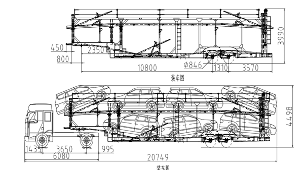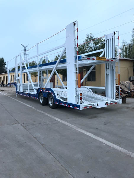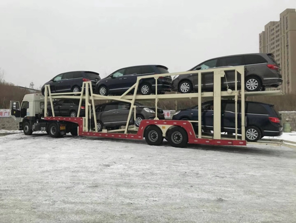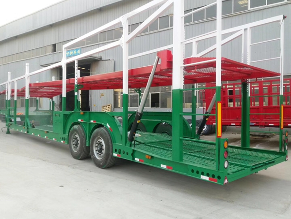 車輛運輸半掛車是一種用于道路貨物運輸的車輛。與普通卡車不同,半掛車是由一個拖車底盤和一個帶5軸或6軸的拖車車架組成的,半掛車拖車車架一般比單車高,能夠在運輸高度限制的區域進行貨物運輸。