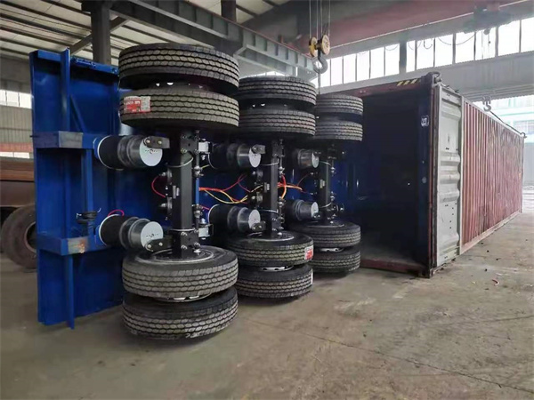 集裝箱半掛車是載運集裝箱的專用運輸掛車。集裝箱運輸發展初期,因集裝箱載重量較小,數量不大,多用普通載貨汽車載運。20世紀60年代以來,隨著集裝箱運輸的迅速發展,各國相繼研制成專門運輸集裝箱的汽車。集裝箱掛車裝載部位的尺寸按標準集裝箱尺寸確定,并在相應于集裝箱底部四角的位置上設有固定集裝箱的扭鎖裝置。載運集裝箱的專用運輸掛車。