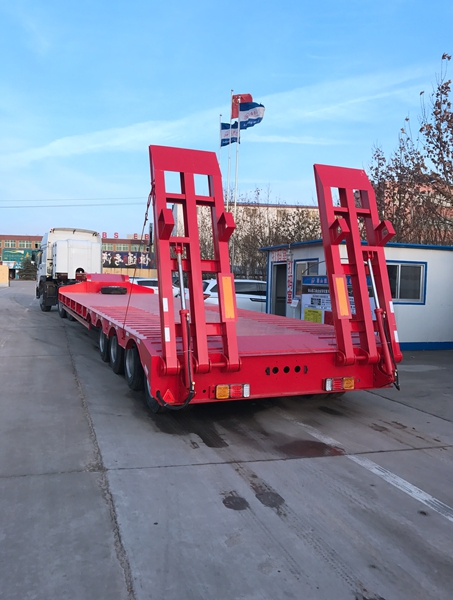 低平板半掛車的一個顯著區別是車身高度。普通半掛車的車廂高度通常較高,適合運輸日常的普通貨物,而低平板半掛車的設計則是為了降低車廂離地高度。其低平的設計讓貨物的重心更接近地面,這在運輸大型設備、挖掘機、推土機等超重、超大貨物時能夠提供更高的穩定性,不容易在行駛過程中發生側翻。同時,低車廂設計也方便裝卸貨物,尤其是一些需要使用斜坡或吊車裝卸的大型設備,低平板半掛車的低入口設計使整個過程更加高效。